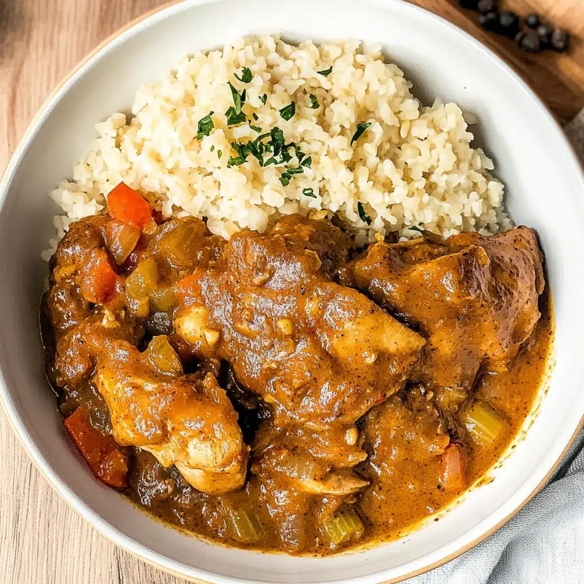 Cauliflower Rice: A low-carb alternative that brings a subtle nuttiness, perfectly balancing the peanut flavors in the stew while keeping it light.