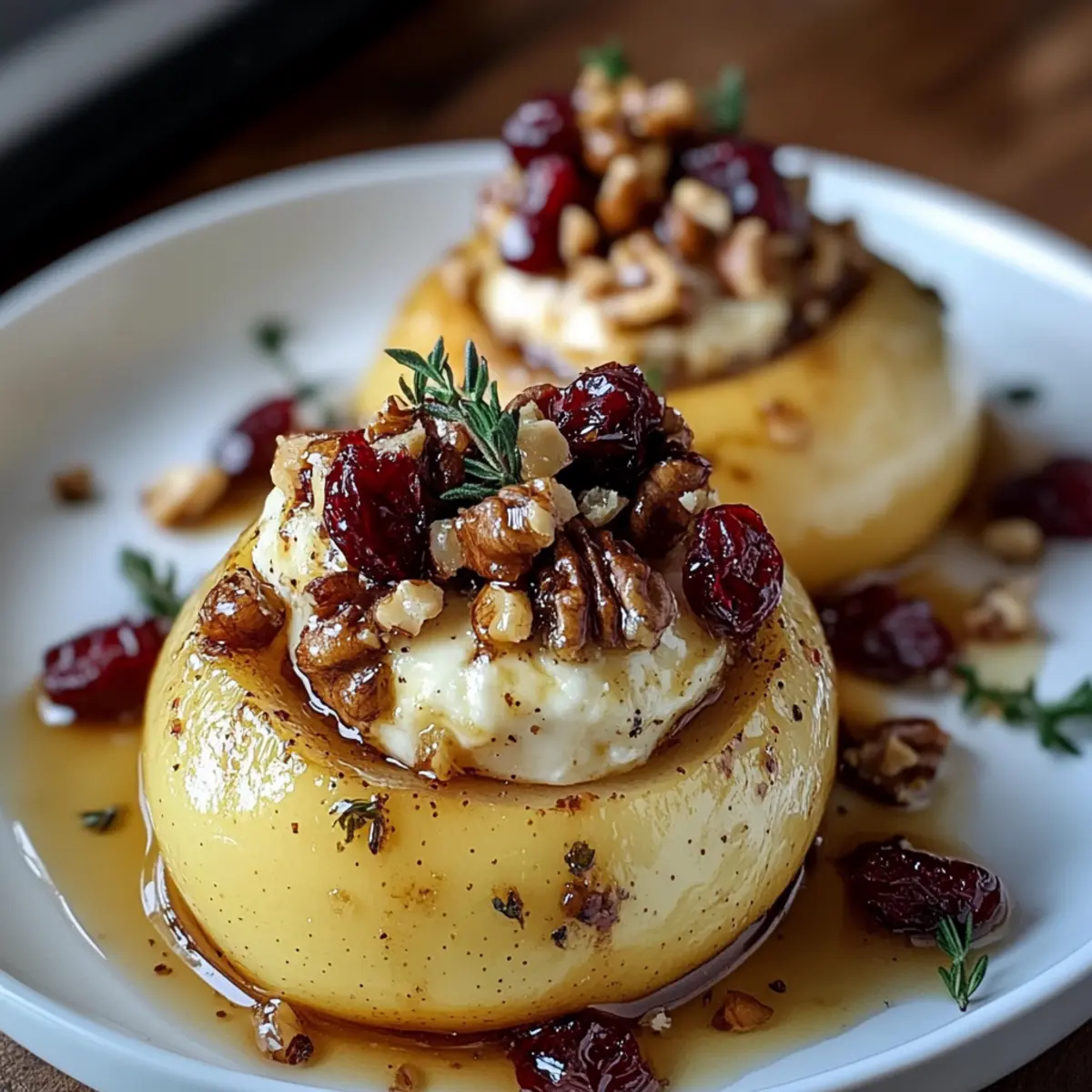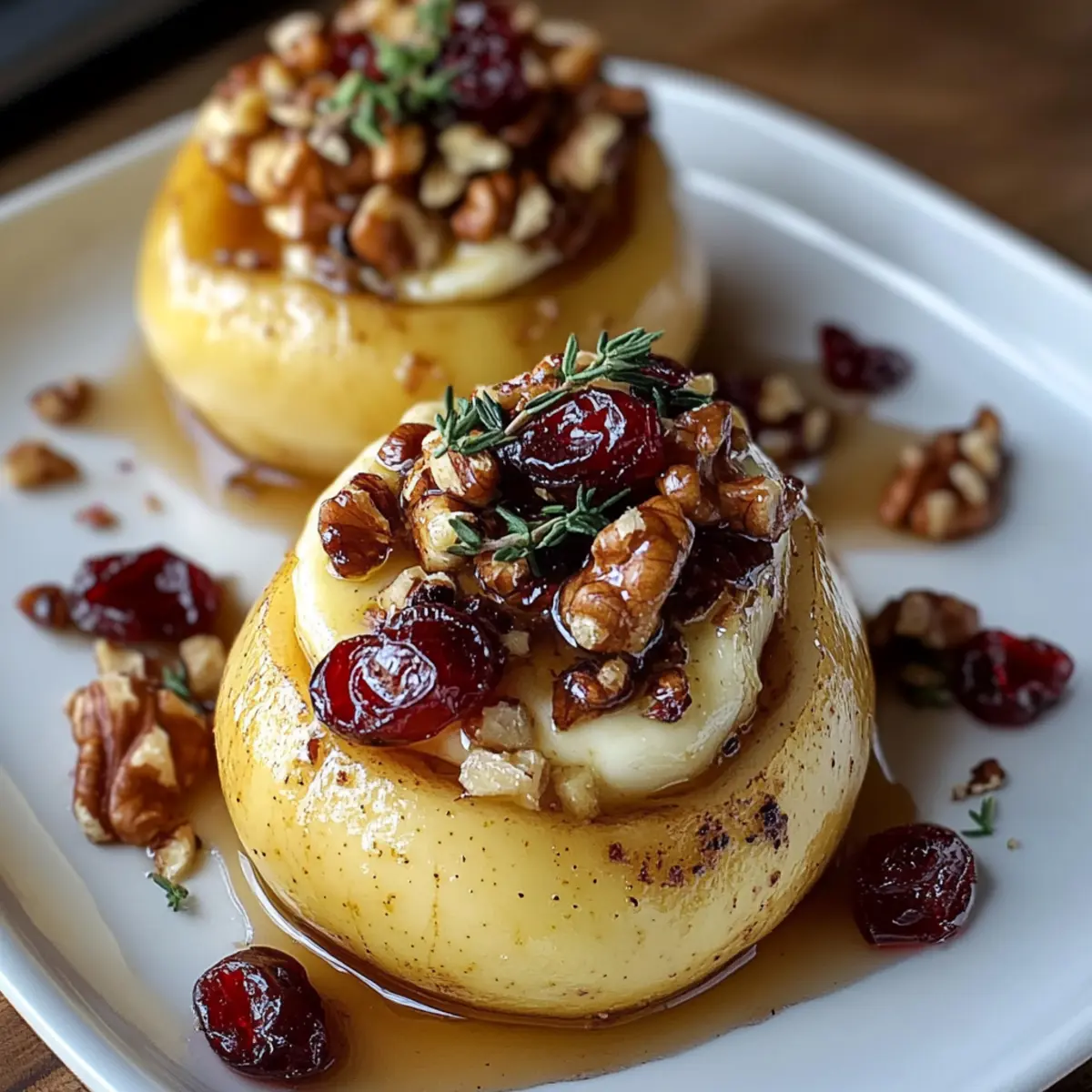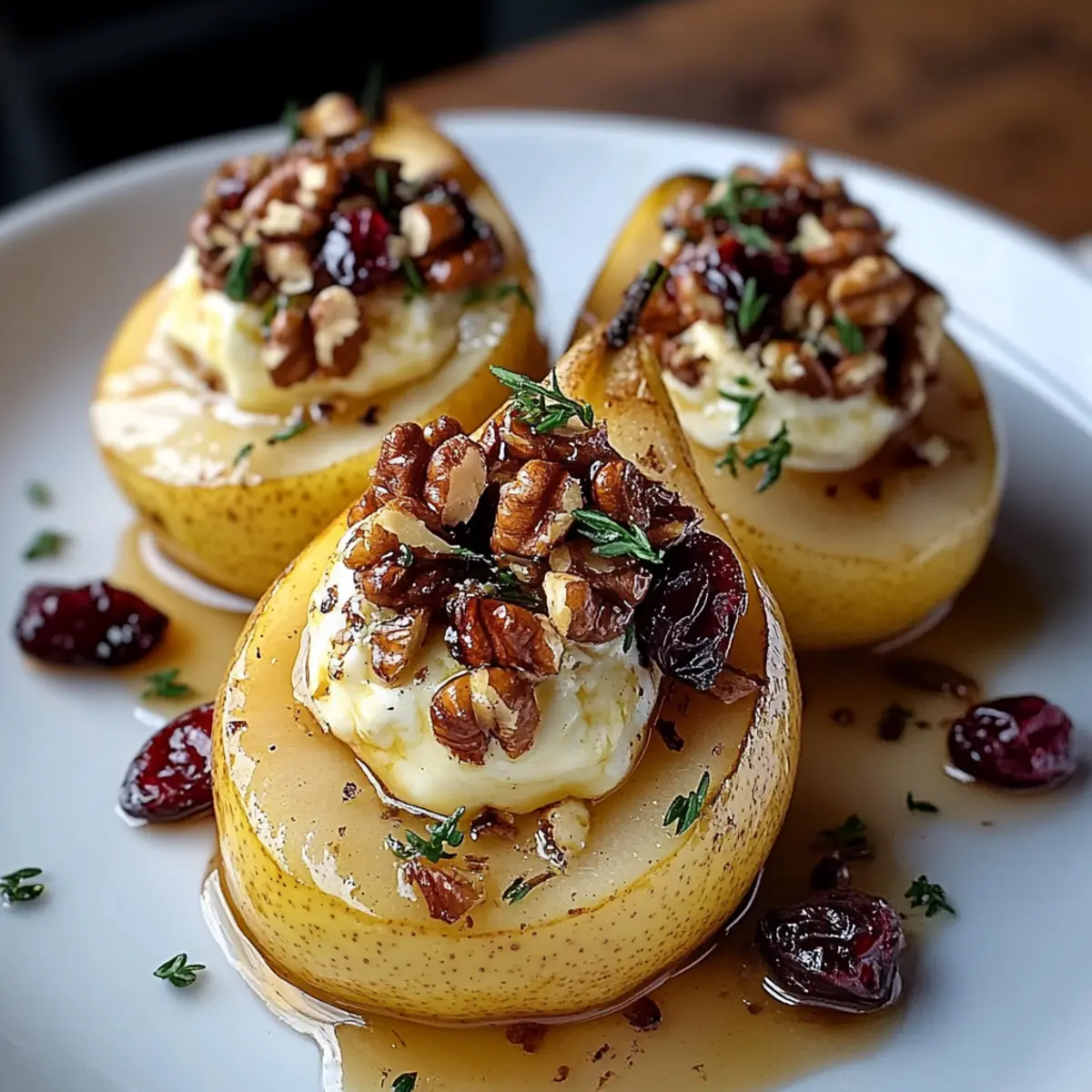 Once baked, remove the pears from the oven and drizzle them with a bit of extra honey for added sweetness. Garnish with fresh mint or thyme leaves for a bright and aromatic finish. This elegant touch not only enhances presentation but elevates your Baked Pears with Brie, Walnuts, and Cranberries to a whole new level.
