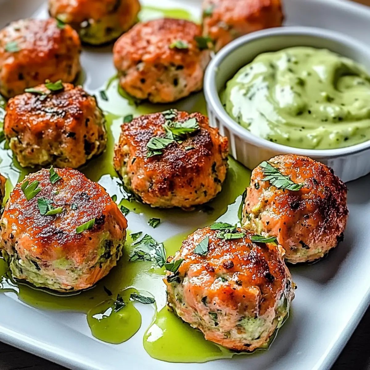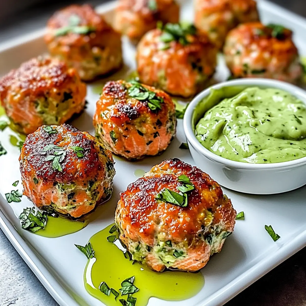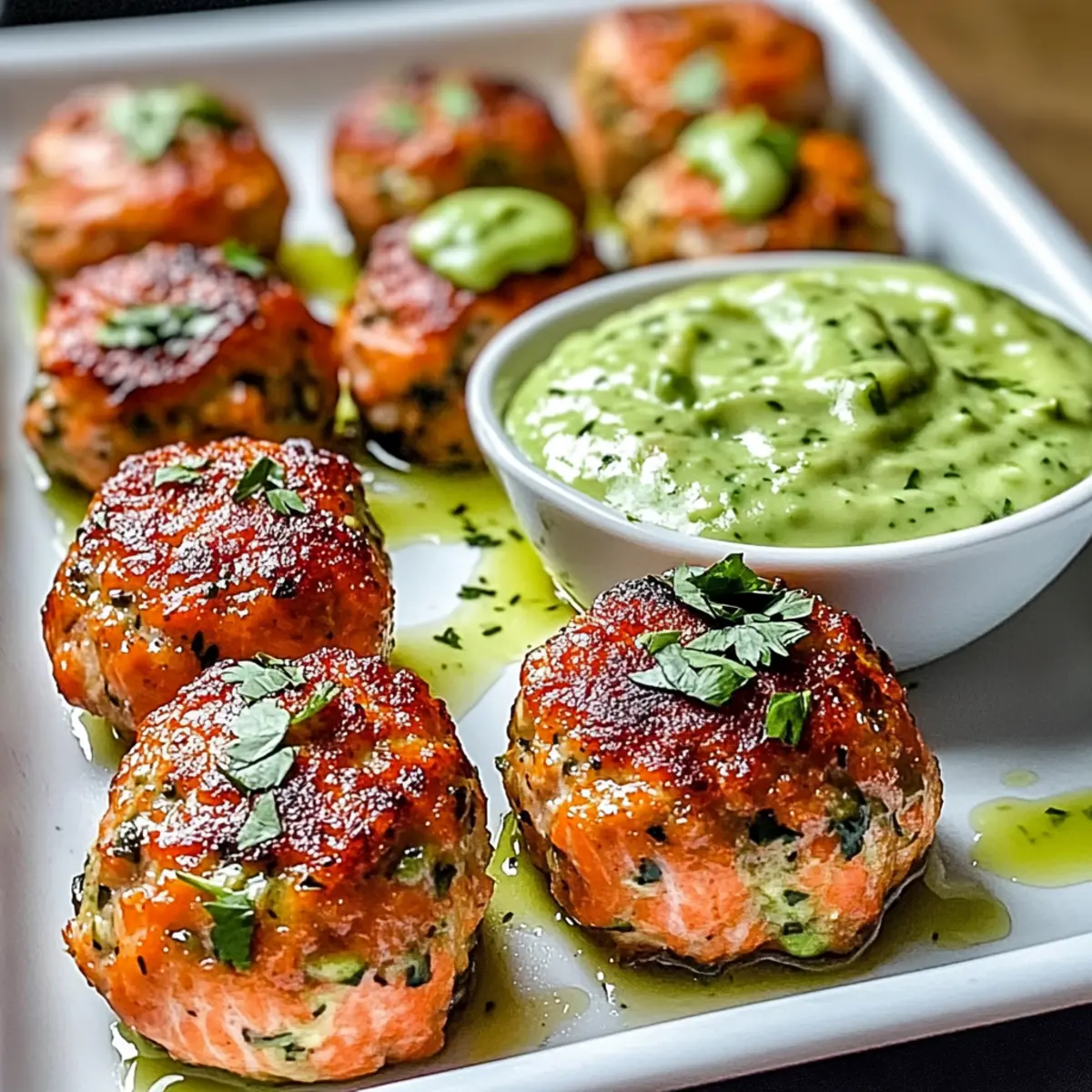 Baked Salmon Meatballs with Creamy Avocado Sauce Bliss