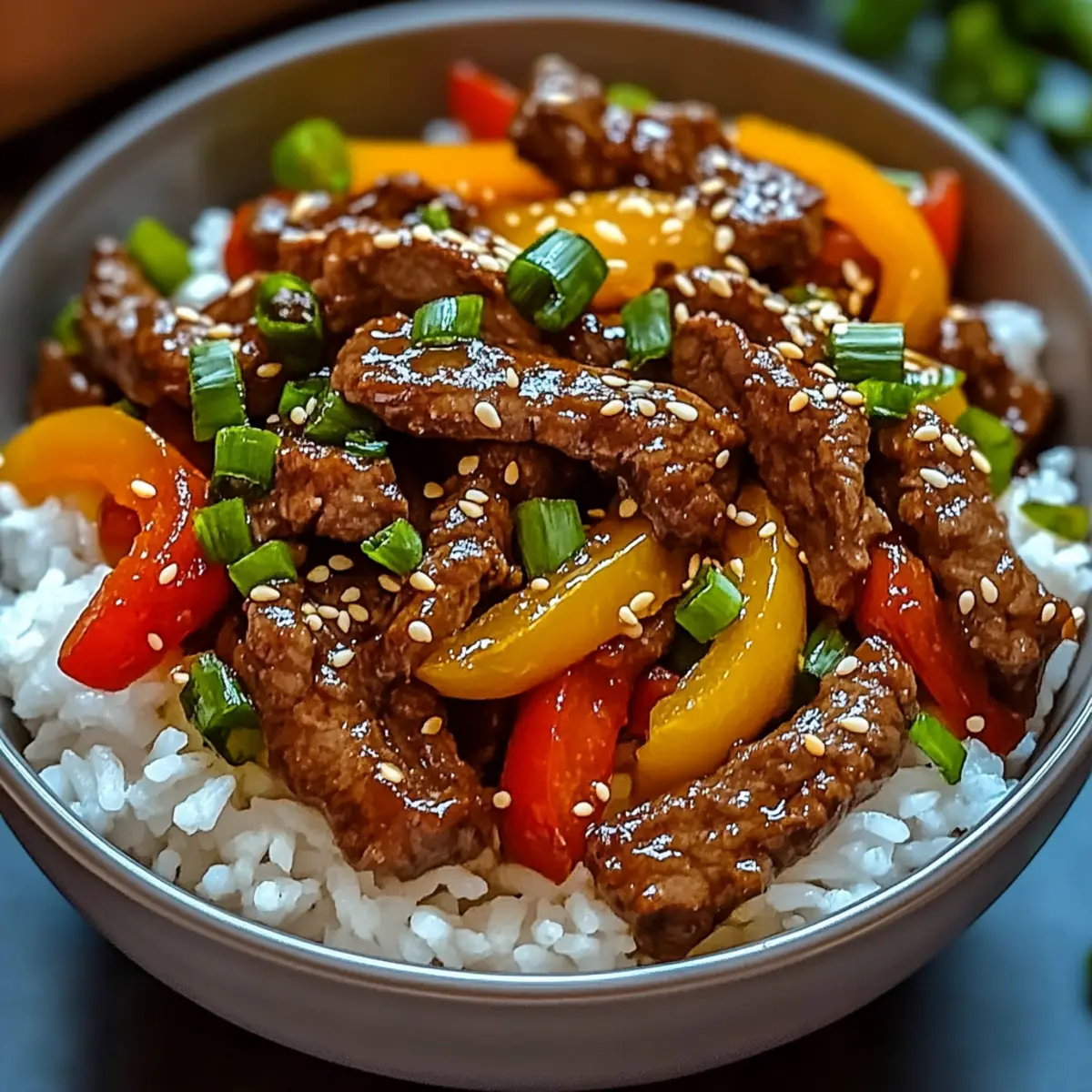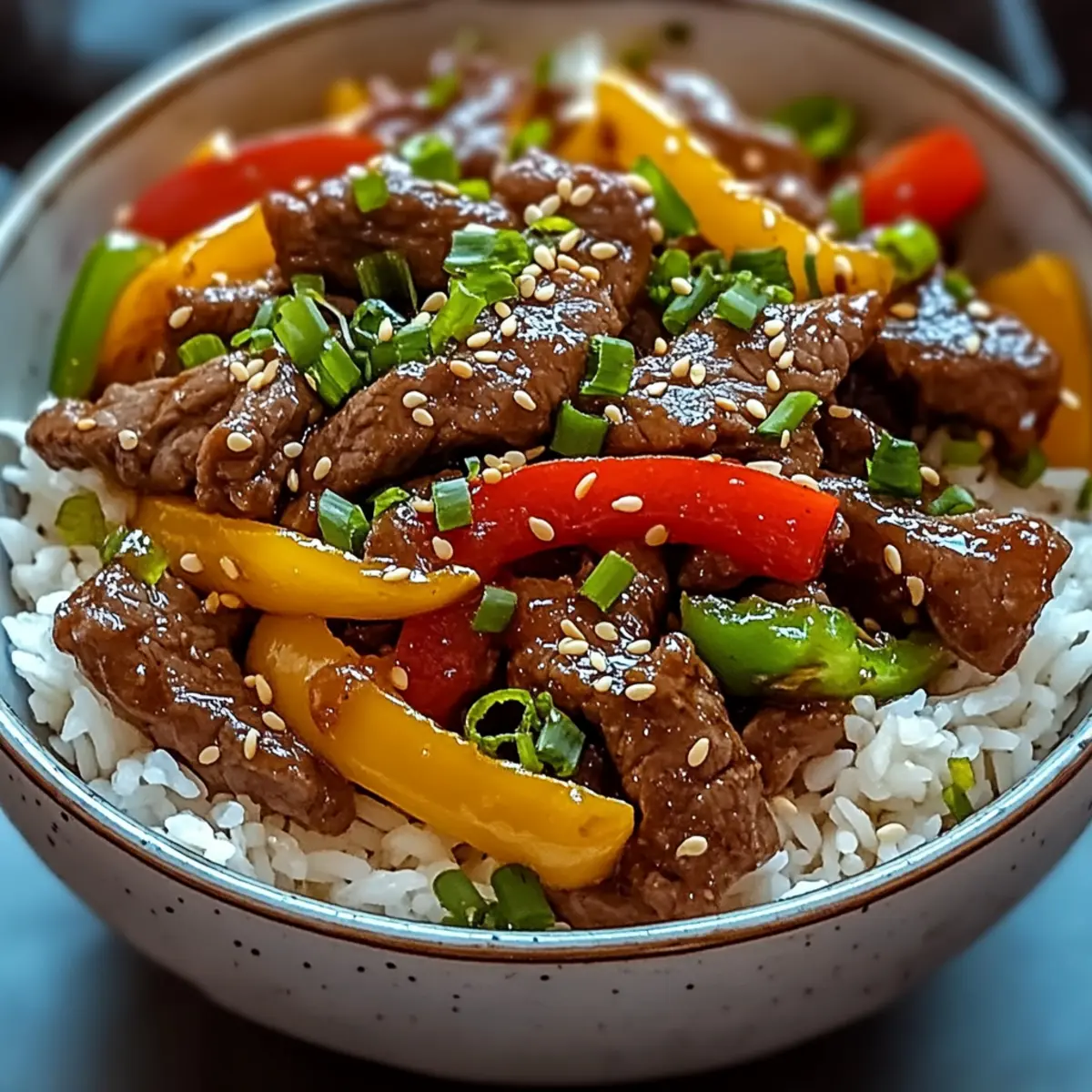Savory Beef and Pepper Rice Bowl: Quick & Delicious Comfort!