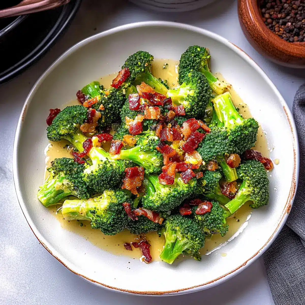 As I stood in my kitchen, the aroma of sizzling bacon wafted through the air, instantly lifting my spirits. What’s not to love about a dish that combines the vibrant crunch of broccoli with the smoky richness of crispy bacon? This Broccoli with Garlic Sauce & Bacon recipe is my secret weapon for turning a simple vegetable into a star side dish. Packed with healthy benefits and low in calories, this dish proves that eating well doesn’t have to be dull. The garlic sauce enhances the natural sweetness of the broccoli while accentuating that delightful bacon flavor, making it a true crowd-pleaser at the dinner table. Whether you’re serving it up as a side for grilled chicken or enjoying it solo, it offers a deliciously satisfying twist to your weeknight meals. Ready to add some flavor to your home-cooked favorites? Let’s dive into this delightful recipe!