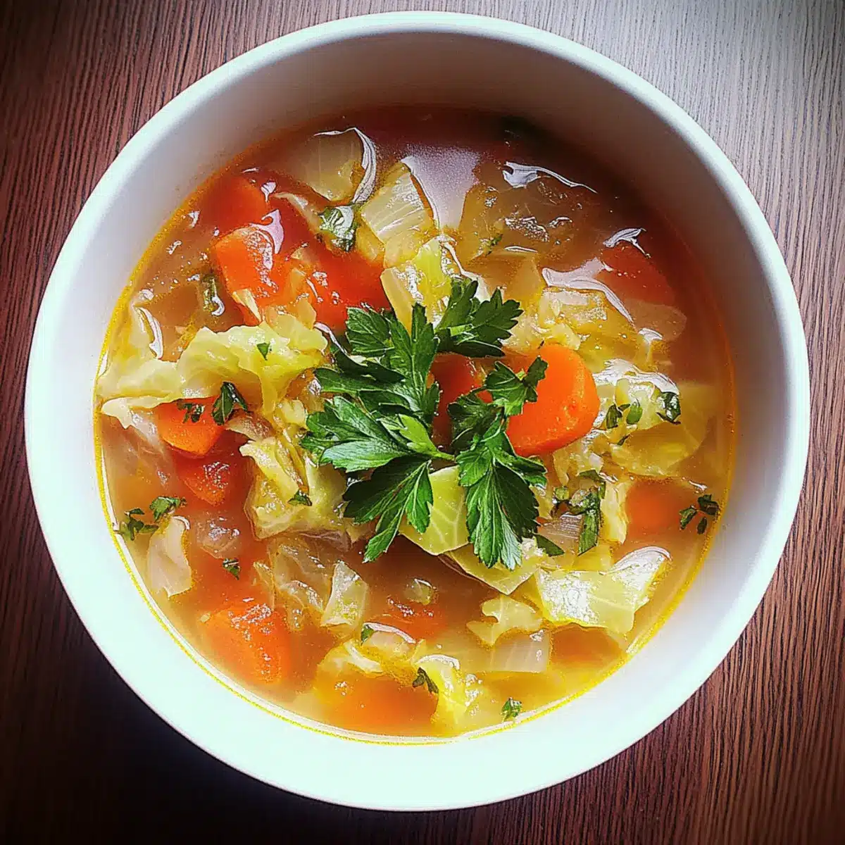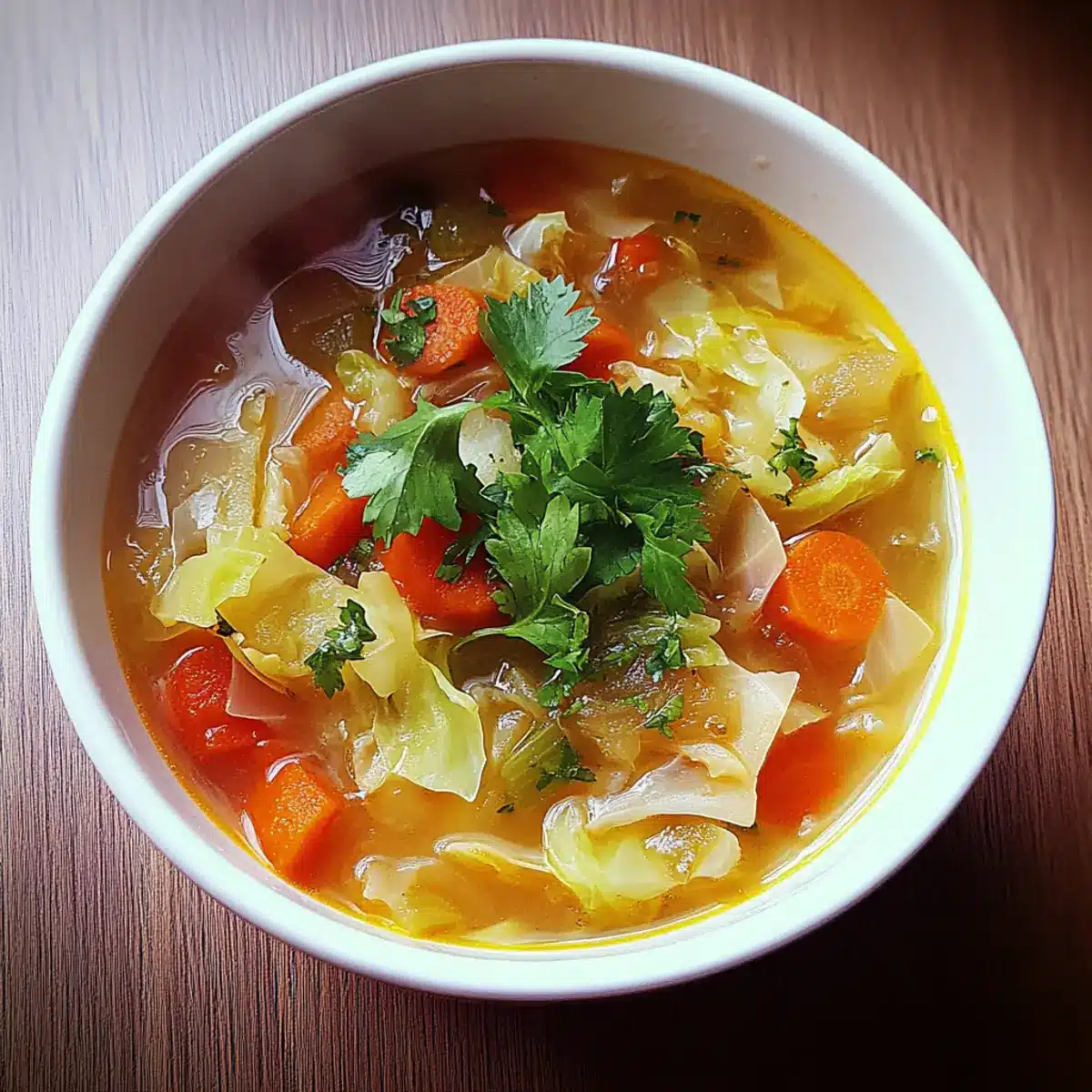 Ladle the warm cabbage soup into bowls and enjoy its comfort! For an optional garnish, sprinkle some fresh herbs on top or add a squeeze of lemon juice for a zesty finish. This versatile soup pairs beautifully with a fresh salad or whole grain bread, creating a satisfying meal full of flavor and nutrition.