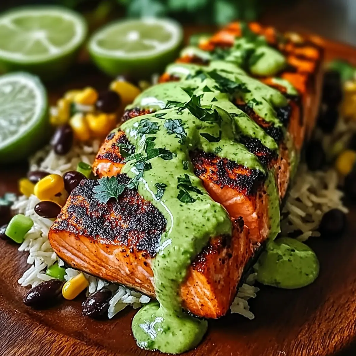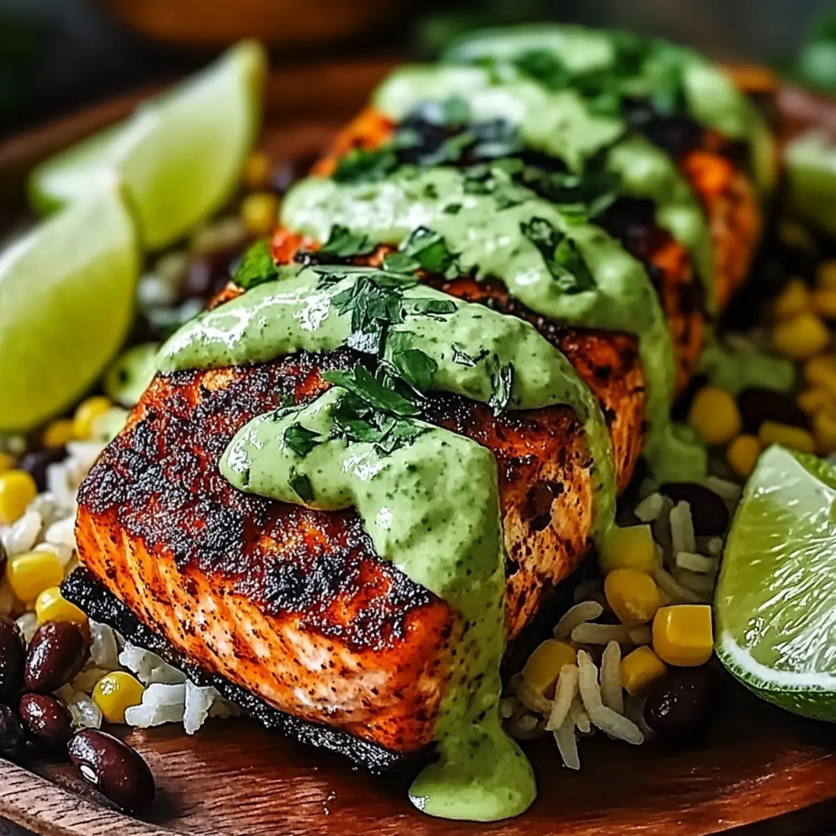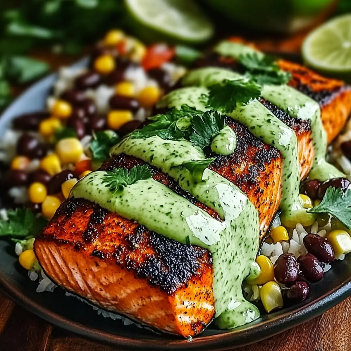 - Assemble the dish by serving salmon on rice or in tortillas, topping with avocado-lime crema and any desired toppings.