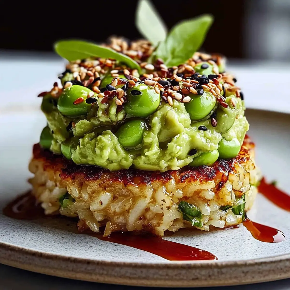Crispy Rice Cakes with Edamame Avocado Whip Delight