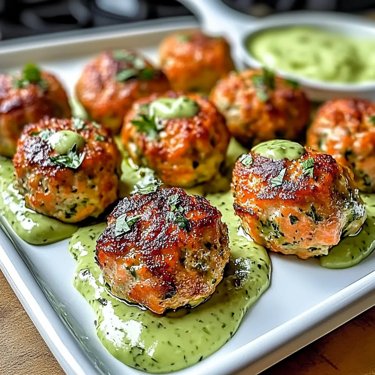 Baked Salmon Meatballs with Creamy Avocado Sauce Bliss
