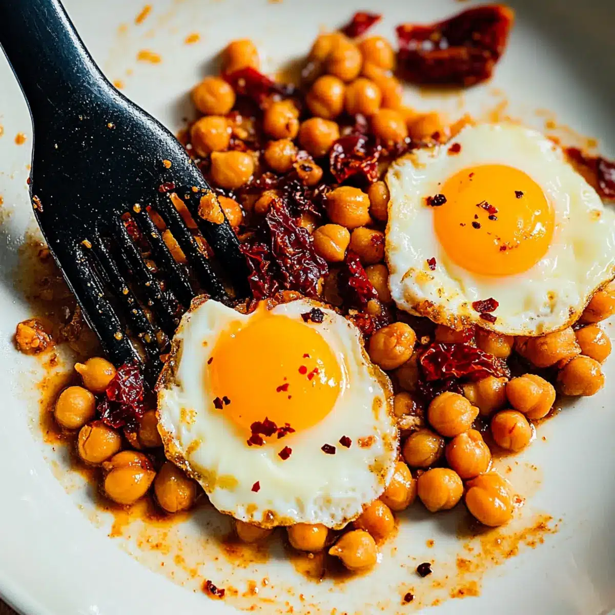 These Smoky Chickpea Fried Eggs are perfect for meal prep enthusiasts! You can cook the chickpeas up to 3 days in advance, allowing their crispy texture to remain intact. Simply heat a non-stick skillet, add the drained chickpeas with sundried tomatoes and smoked paprika, and cook until crispy. Store them in an airtight container in the refrigerator. When you’re ready to enjoy your Chickpea Fried Eggs, simply reheat the chickpeas in the skillet, create wells, and crack in fresh eggs. Cook as instructed, ensuring the yolks remain perfectly runny. By prepping the chickpeas ahead of time, you’ll save precious moments on busy mornings while still serving up a delicious and nourishing breakfast!