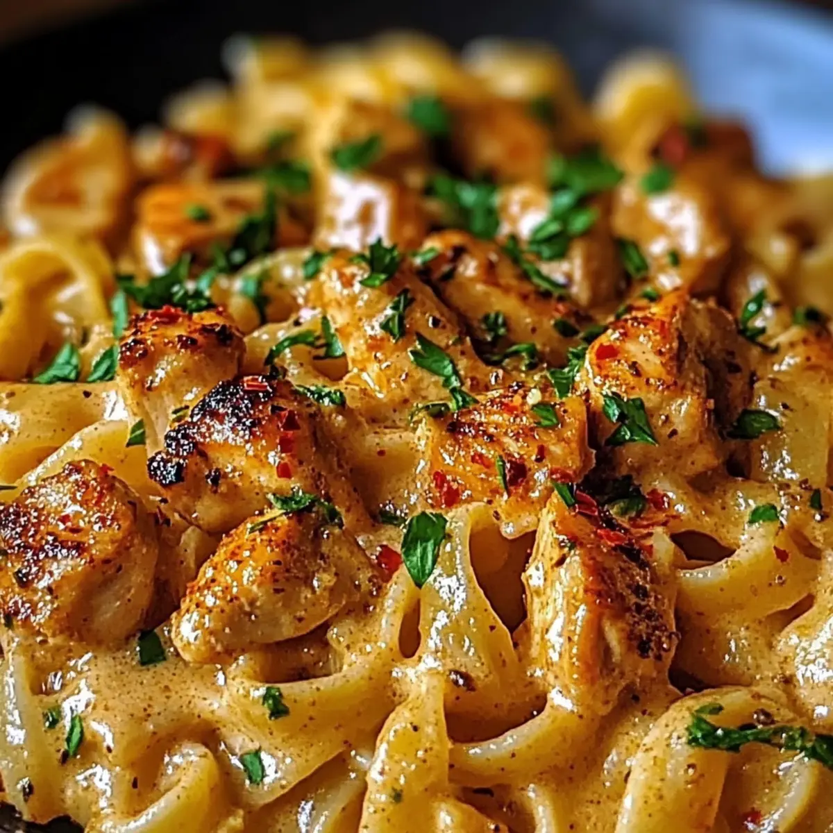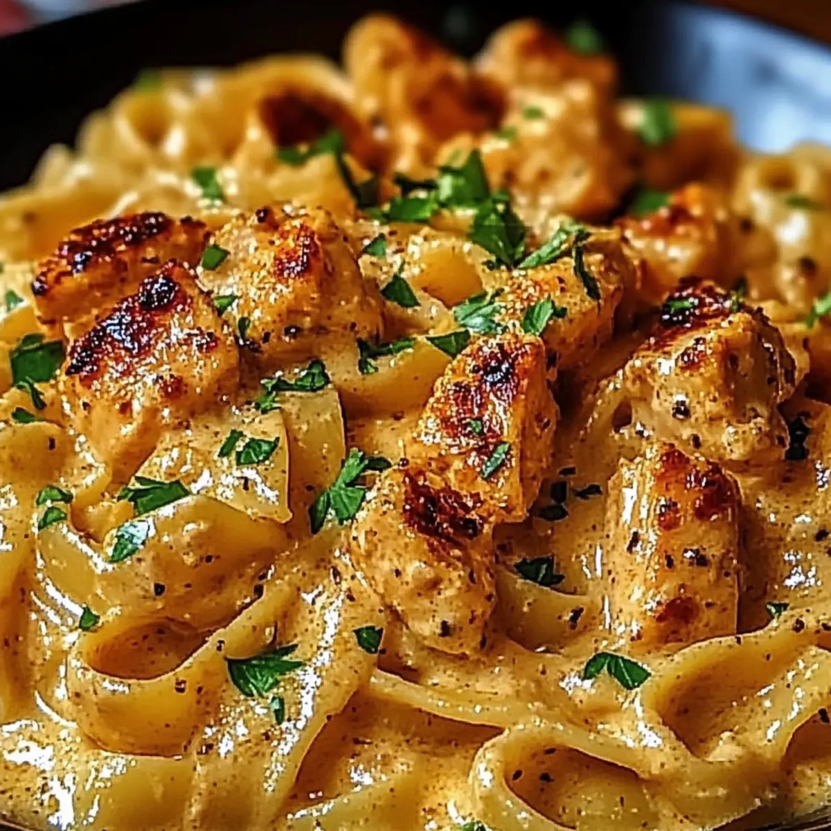 Plate your Cowboy Butter Chicken Pasta, generously topping each serving with freshly grated Parmesan cheese and a sprinkle of chopped parsley for added color and flavor. Serve warm, and savor the delightful aroma that fills your kitchen, inviting everyone to the table for a cozy meal.