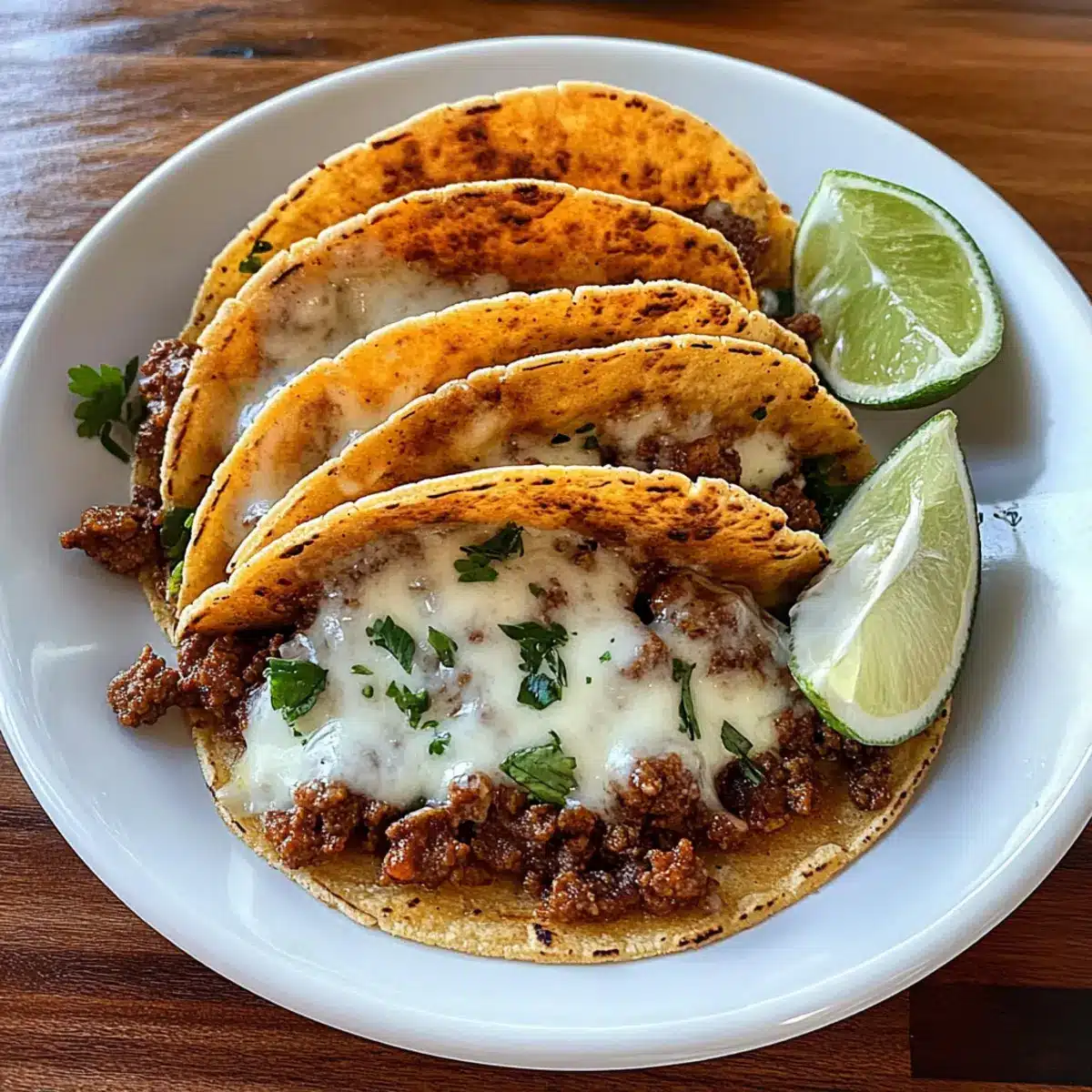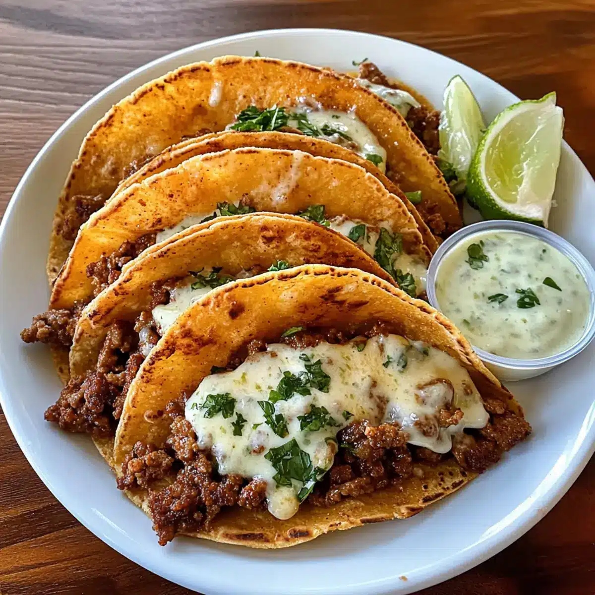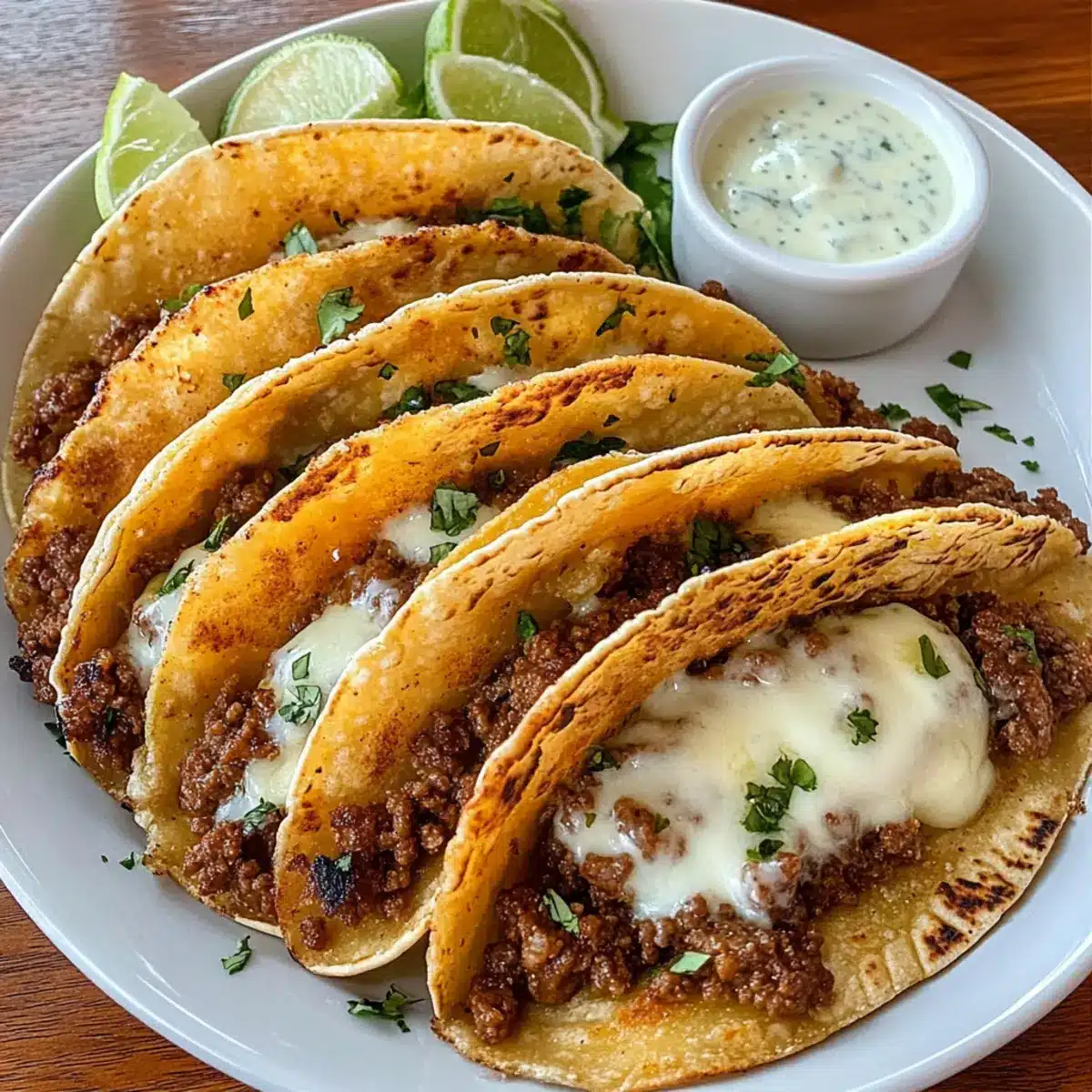 Homemade Salsa: Fresh and vibrant, a homemade salsa with tomatoes, onions, and jalapeños pairs beautifully with the crunchy tacos, bringing a burst of flavor. The brightness balances the richness of the cheese and beef filling.