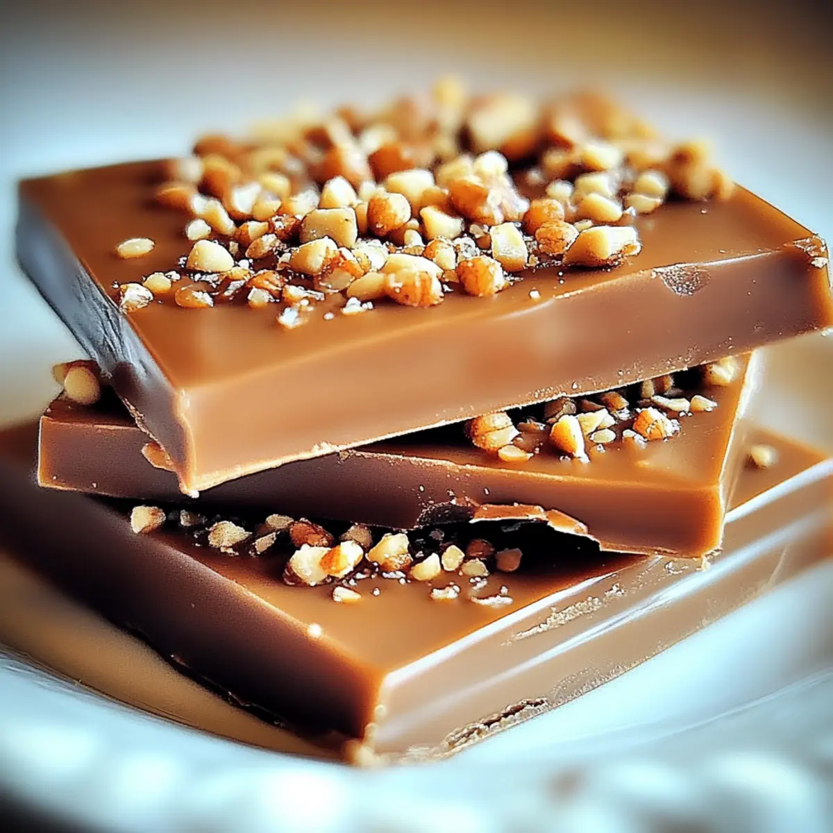 - Immediately sprinkle the chopped nuts over the chocolate layer and gently press them in.