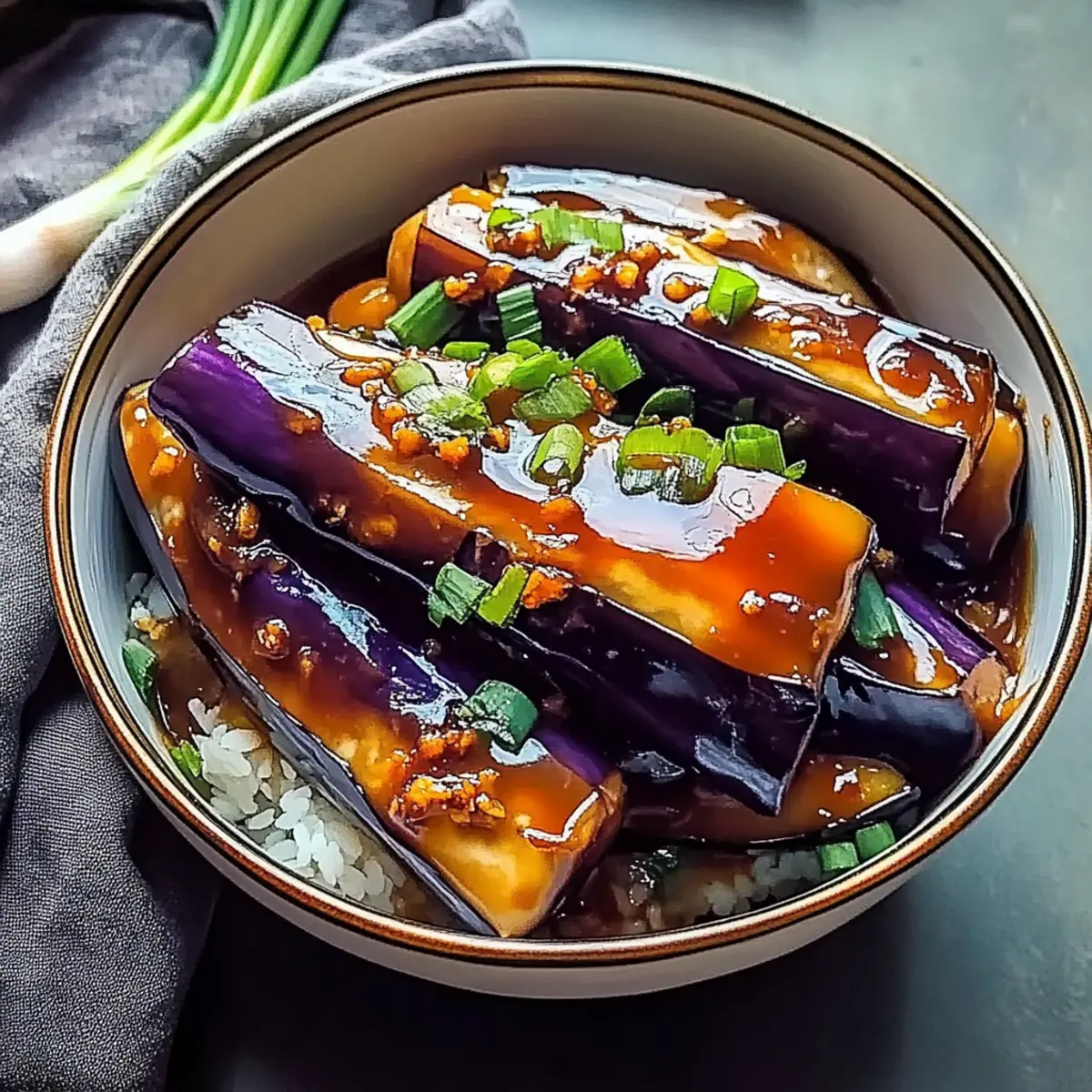 Finally, sprinkle a handful of chopped spring onions over the top of your beautifully cooked Fish-Fragrant Eggplant for that extra burst of color and freshness. Serve immediately, placing your vibrant creation over a bed of fluffy steamed rice or noodles. This dish is not just a meal; it’s a delightful experience waiting to be savored!