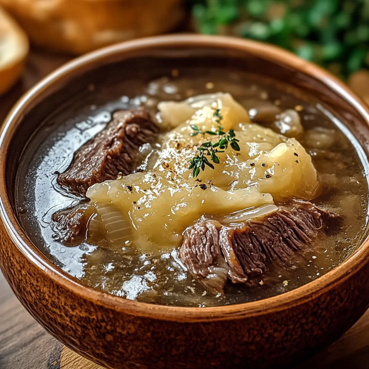 Hearty, Savory Base: This soup combines beef short ribs and caramelized onions, creating an aromatic blend that warms the soul. Flavor Explosion: The deep, rich broth is packed with layers of flavor from garlic, thyme, and a splash of red wine. Budget-Friendly: Using affordable ingredients, this meal feels luxurious without straining your wallet. Warmth in a bowl: Perfect for chilly nights, it wraps you in comfort with every spoonful. Serve it with crusty bread for the ultimate dining experience, much like our Vegetable Soup Hearty or with a side of Chicken Mushroom Soup for an extra treat!