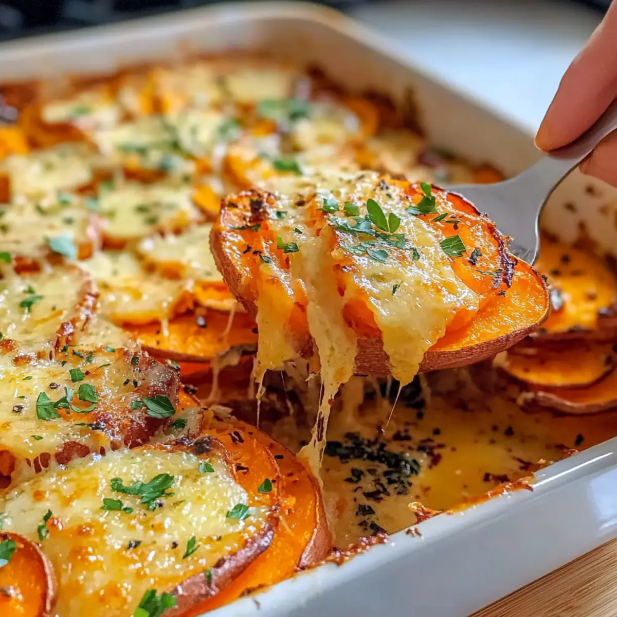 - Cheese Variations: If you’re looking for a twist, try using different cheeses like gruyère or feta for unique flavors in your Garlic Butter Sweet Potato Bake.