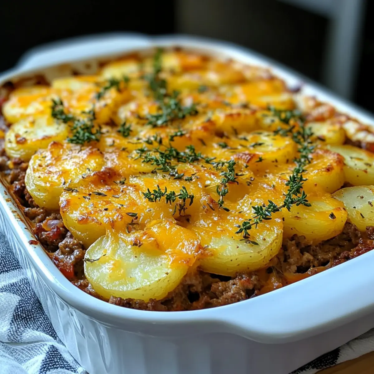 Comforting Warmth: This Hamburger Potato Casserole invites you to indulge in the ultimate cozy dish, perfect for chilly nights.