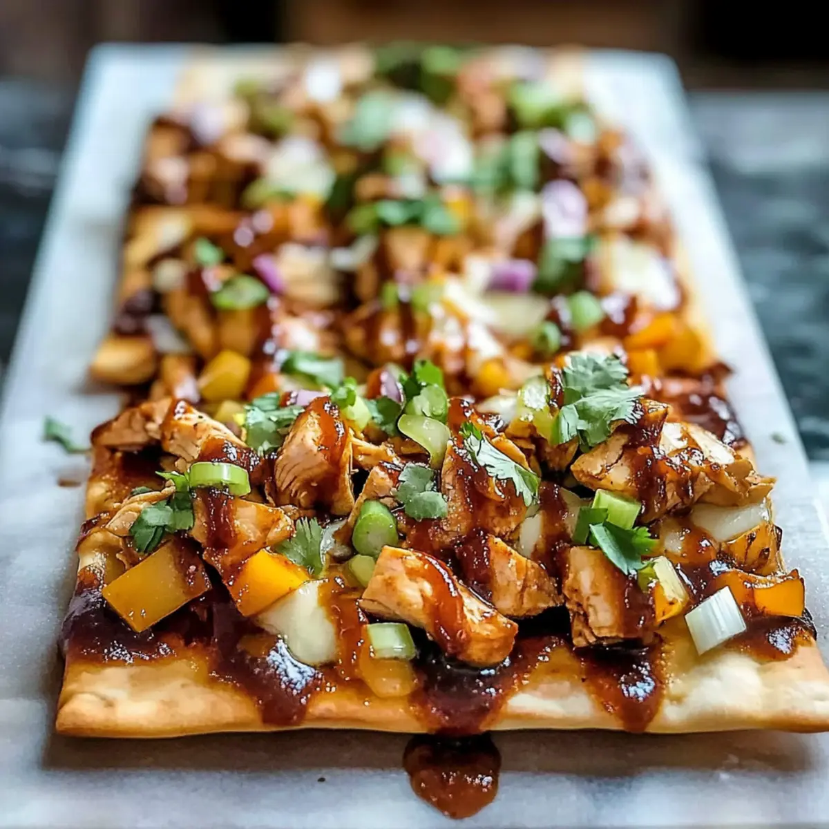 Once your flatbreads are in place, spread a generous layer of BBQ sauce evenly across each crust. Leave about a half-inch border around the edges to avoid sogginess, allowing the crust to remain crisp. The BBQ sauce adds that irresistible tangy flavor that complements the chicken beautifully.