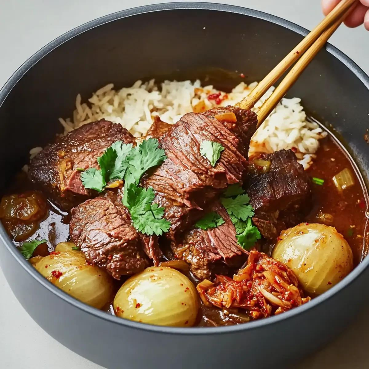 As the savory aroma of Korean spices wafts through my kitchen, I can’t help but feel a wave of comfort wrap around me. This Korean Style Pot Roast is not just a recipe; it’s the heart of our family dinners, where laughter and joy linger over each bite. Combining tender beef with a medley of rich flavors, this hearty dish transforms an ordinary evening into a memorable gathering. It’s incredibly versatile, offering loveable leftovers that are perfect for meal prep or a delightful twist on traditional comfort food. Imagine serving it over fluffy rice, garnished with vibrant kimchi, elevating the experience to new heights! Are you ready to dive into this delicious culinary journey?