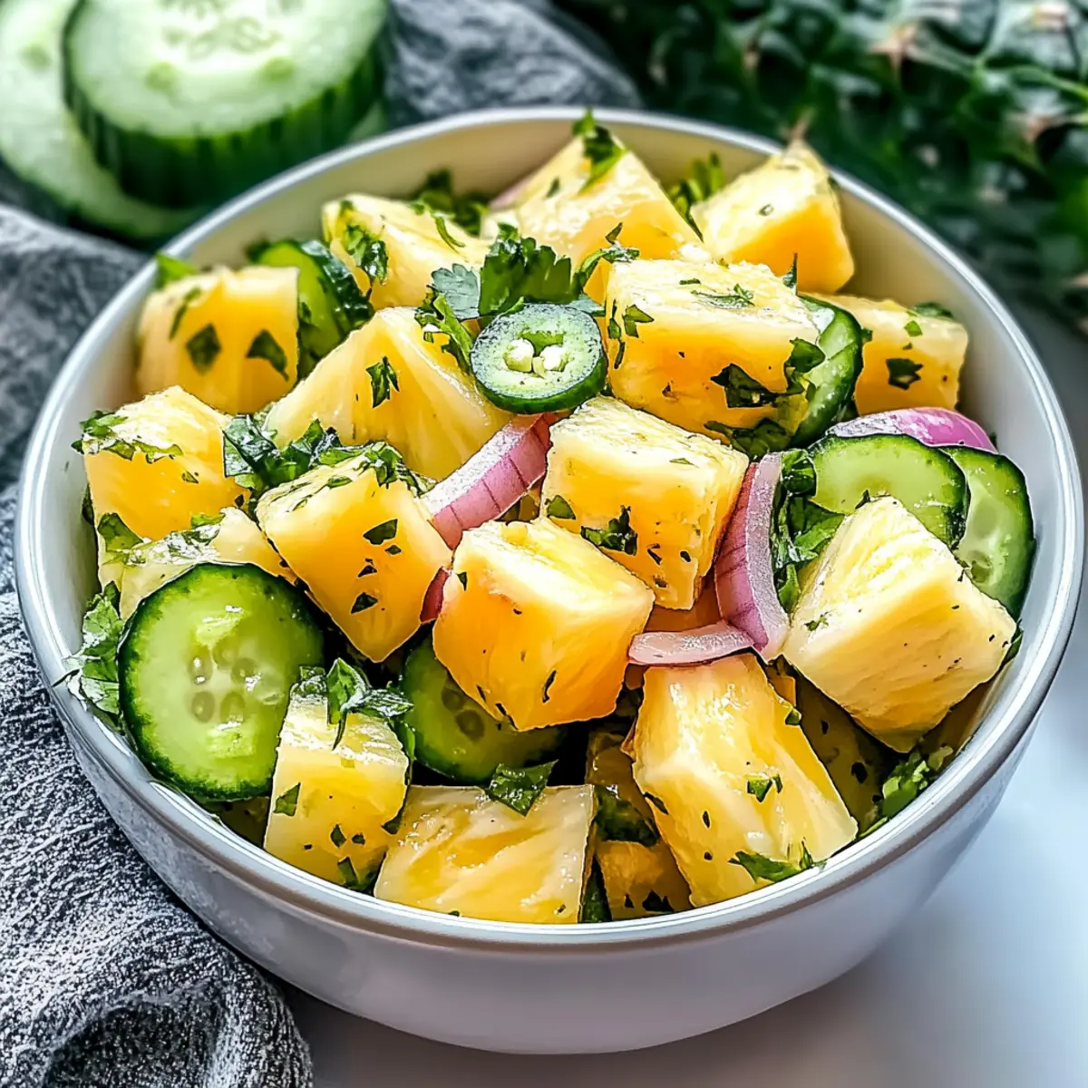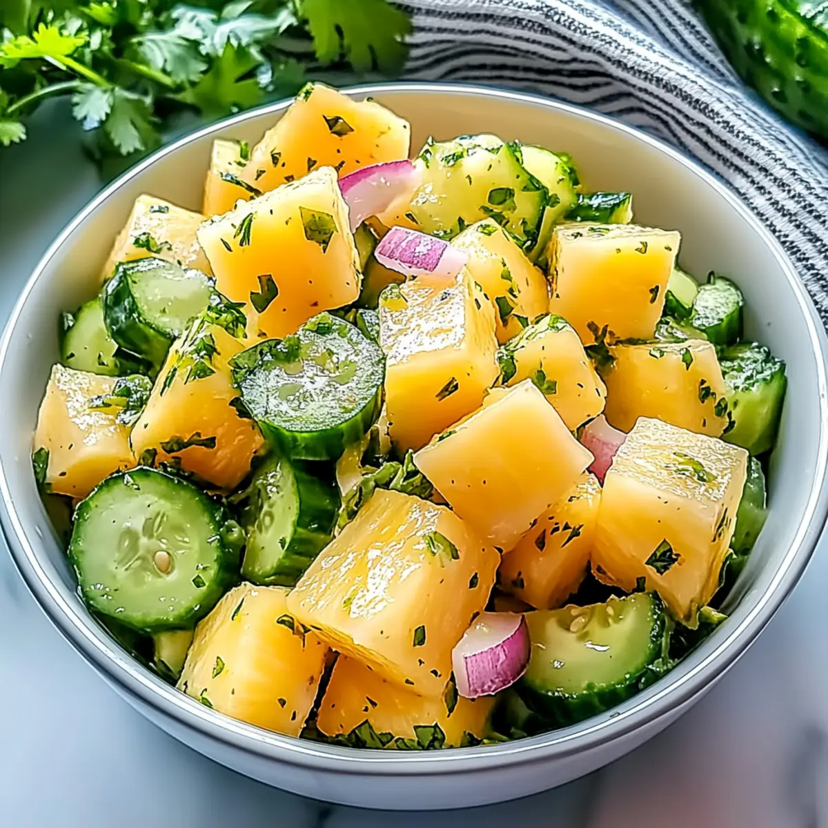 Vibrant Colors: This Pineapple Cucumber Salad is a feast for the eyes, showcasing brightly colored ingredients that instantly lift your mood.