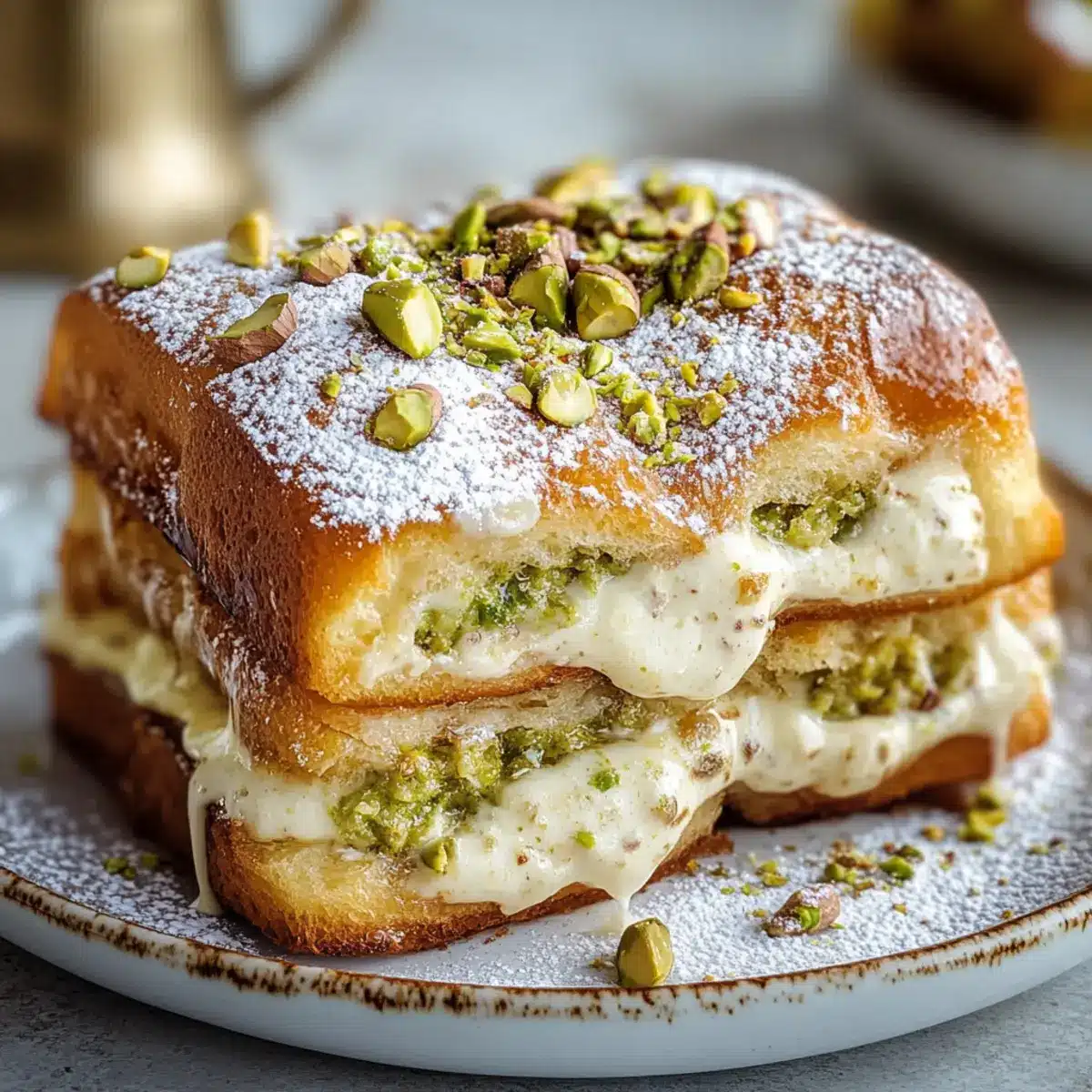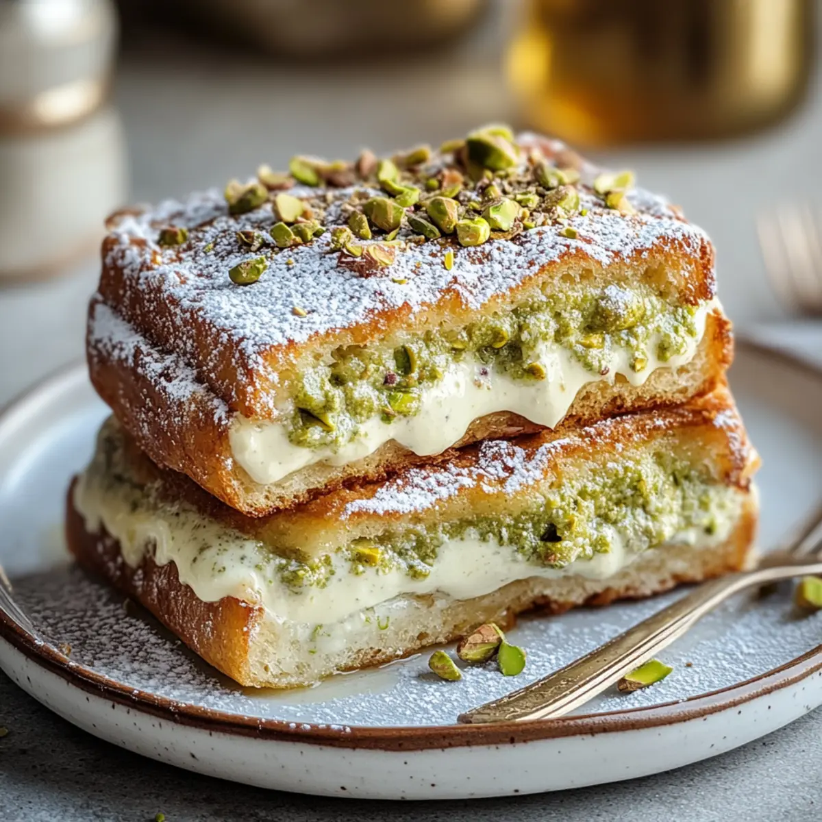Cinnamon Sugar Dusting: A light sprinkle of cinnamon sugar adds a warm spice element that elevates the dish, perfectly pairing with the creamy pistachio filling.