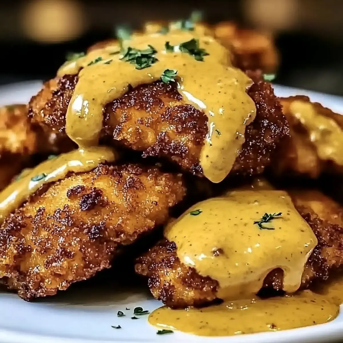 Creamy Sauce: The creamy mustard-cheddar sauce not only adds a tangy kick but also perfectly balances the crunch of the chicken, making every bite irresistible.