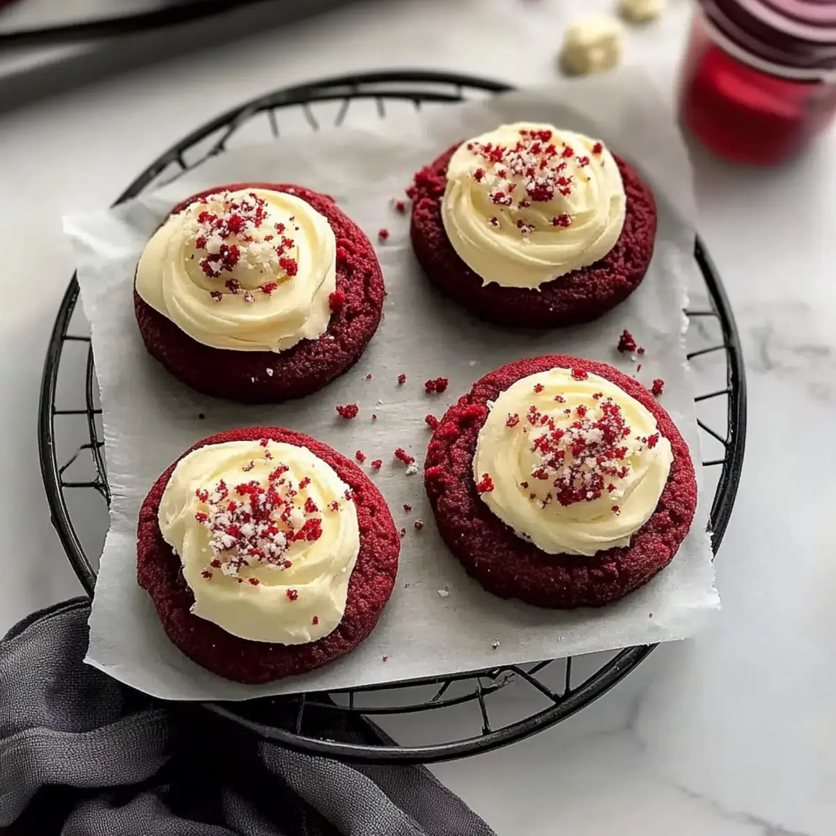 Irresistibly Soft Red Velvet Cookies with Creamy Frosting
