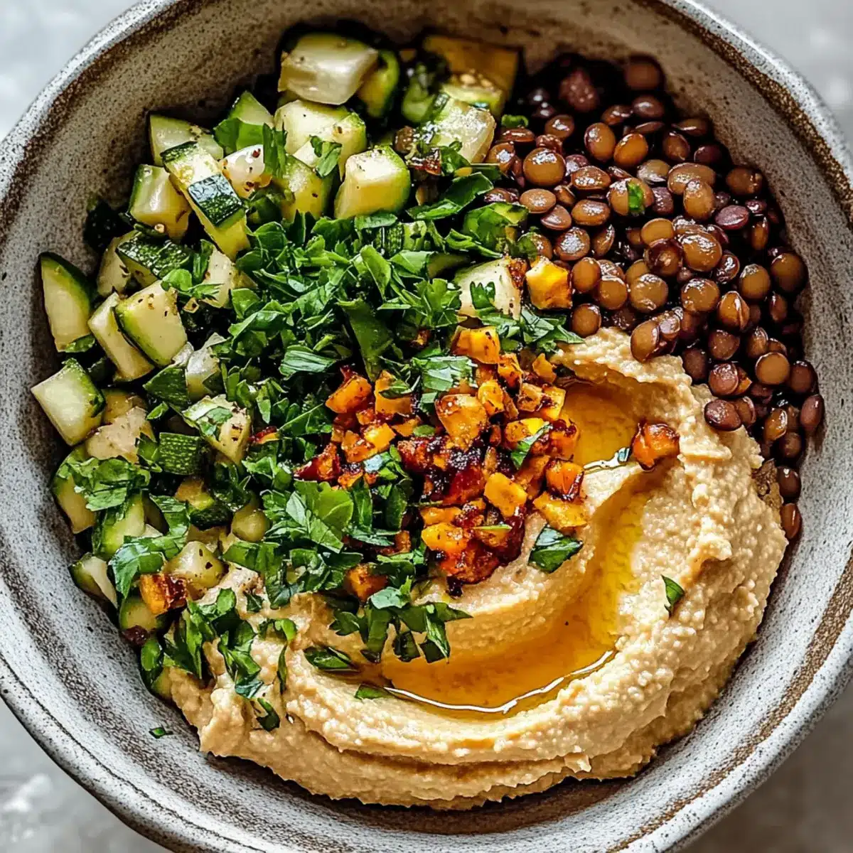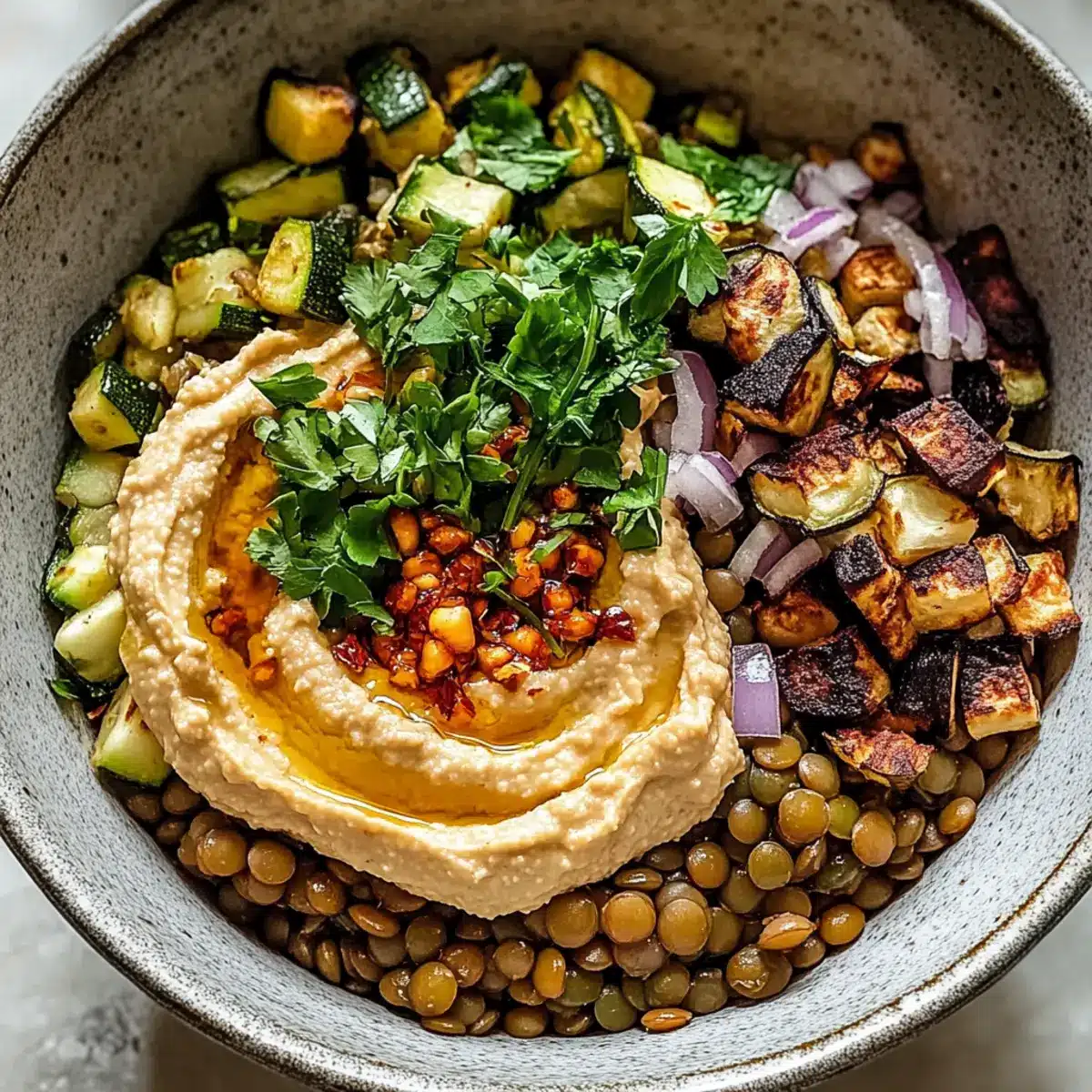 Sautéed Lentil Bowl with Hummus and Chili Oil: A Flavorful Delight