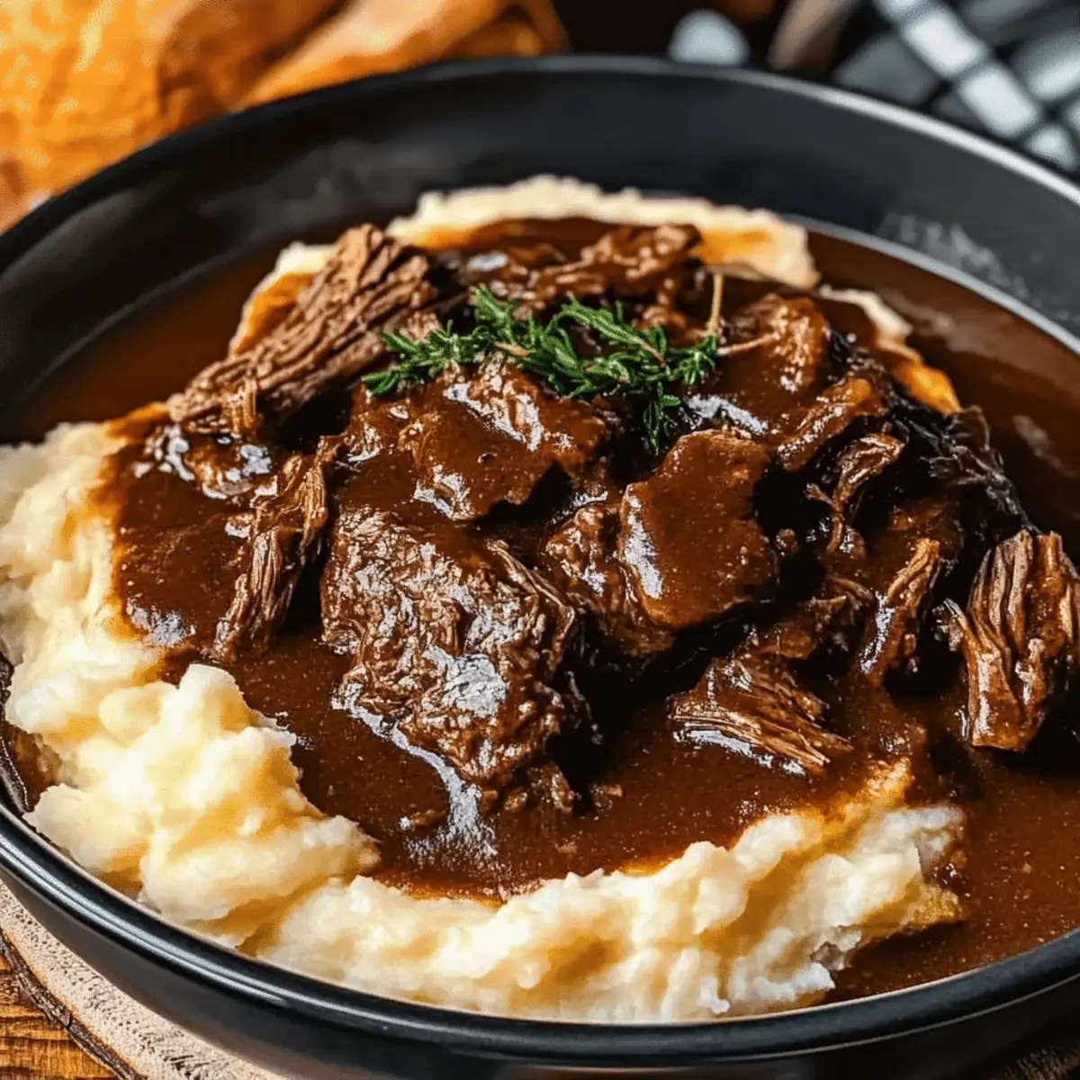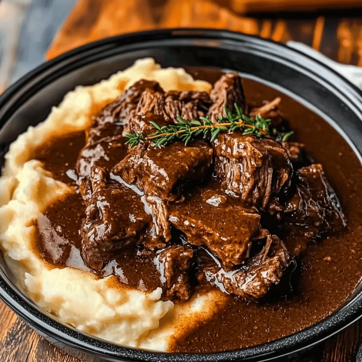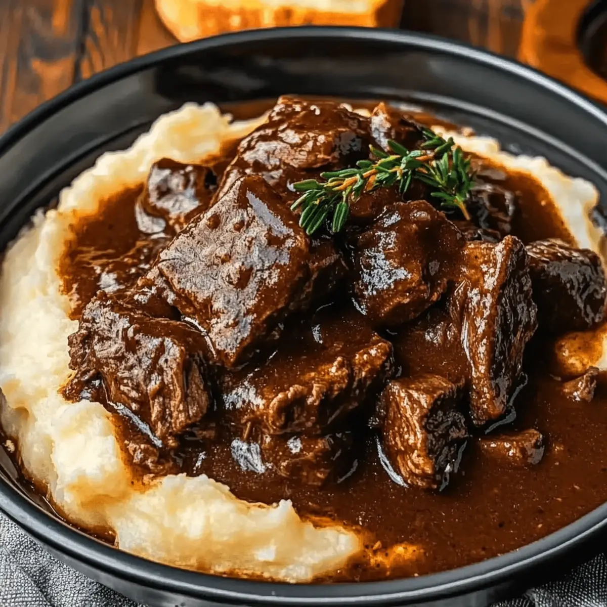 Layer for Texture: Serve your beef over crispy toasted bread with a generous helping of gravy and creamy mashed potatoes; this layered approach makes each bite satisfying.