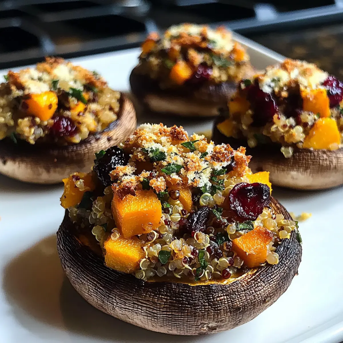 These Autumn Harvest Stuffed Portobello Mushrooms are perfect for busy weeknights and meal prep enthusiasts! You can prepare the stuffing (quinoa, butternut squash, cranberries, and walnuts) up to 3 days in advance and store it in an airtight container in the refrigerator. When you’re ready to serve, simply stuff the cleaned portobello caps with the filling and top them with parmesan cheese. Bake them in the oven for about 20-25 minutes until golden brown. This method not only saves time but also ensures your meal is just as delicious and vibrant as when freshly made. Just remember, store the mushrooms separately to maintain their texture!