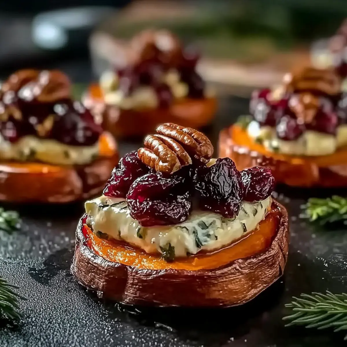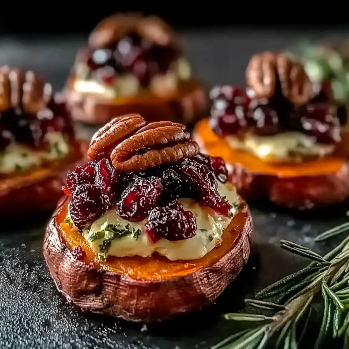 Irresistible Sweet Potato Rounds with Brie and Cranberries