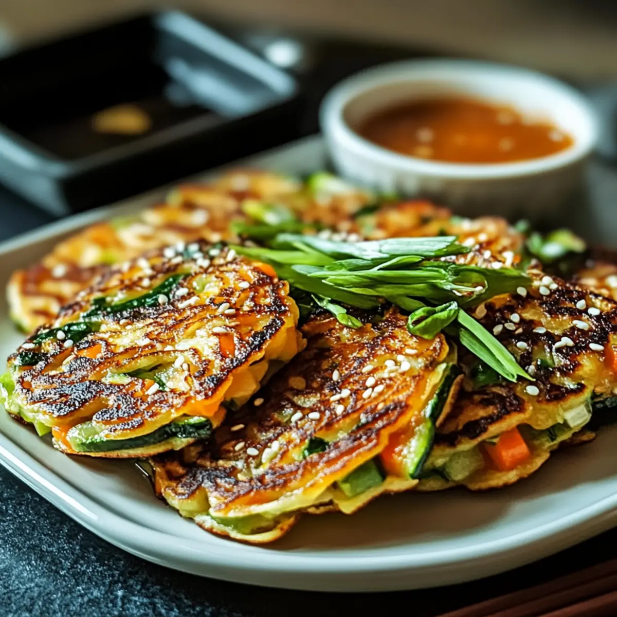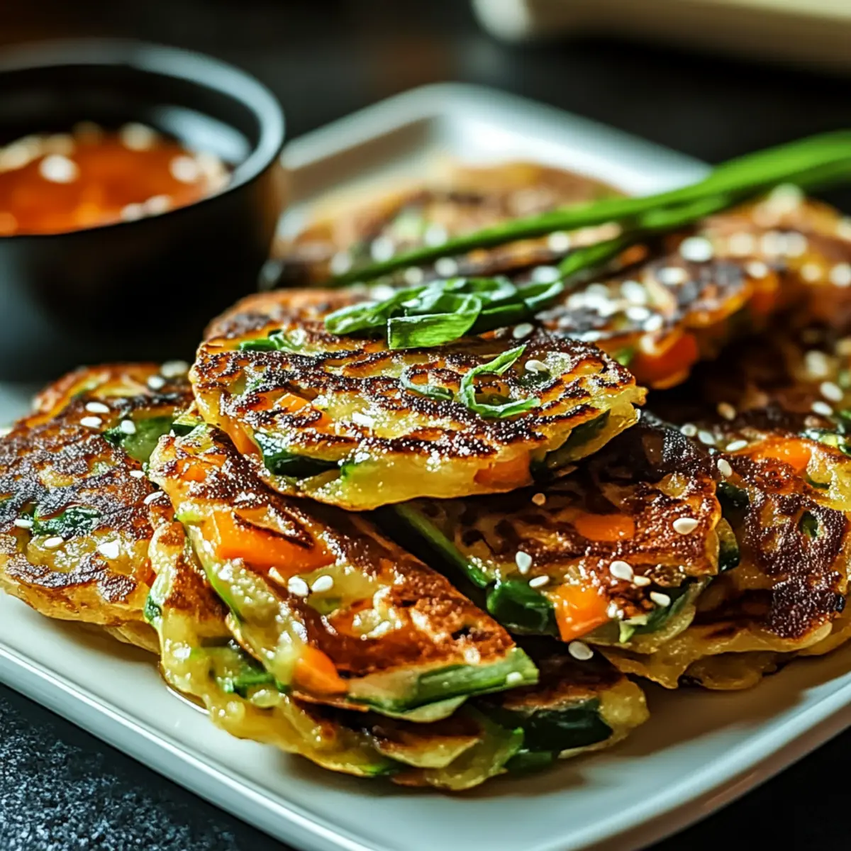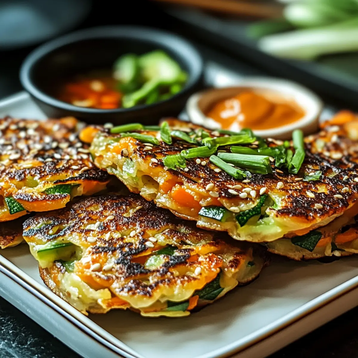 Crispy Vegetable Pancakes with Asian Dipping Sauce Delight